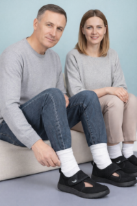 حذاء طبي مريح بتصميم عملي (Slip-On مع لاصق)، مناسب للمشي والاستخدام اليومي